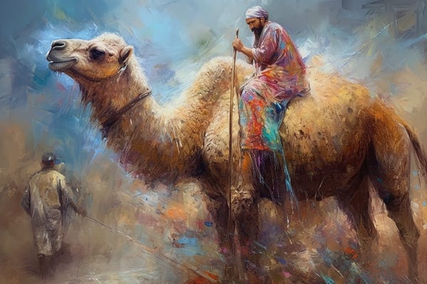駱駝是比喻做生意,為了賺錢便不惜不擇手段的罪孽。我就是騎著駱駝上路,希望在生意的旅途上,透過不斷吸收教訓,不斷懺悔,將駱駝逐漸琢磨變成一條細小得穿得過針孔的駱駝毛,到其時天堂的路便會給我敞開了。